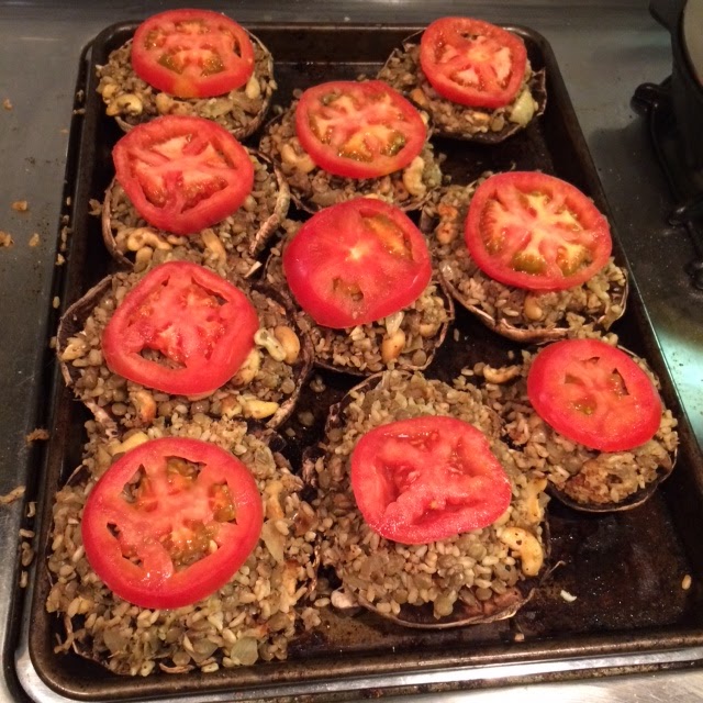 Stuffed Portobello Mushrooms (make a lot of brown rice and reuse Sunday night, if you like)