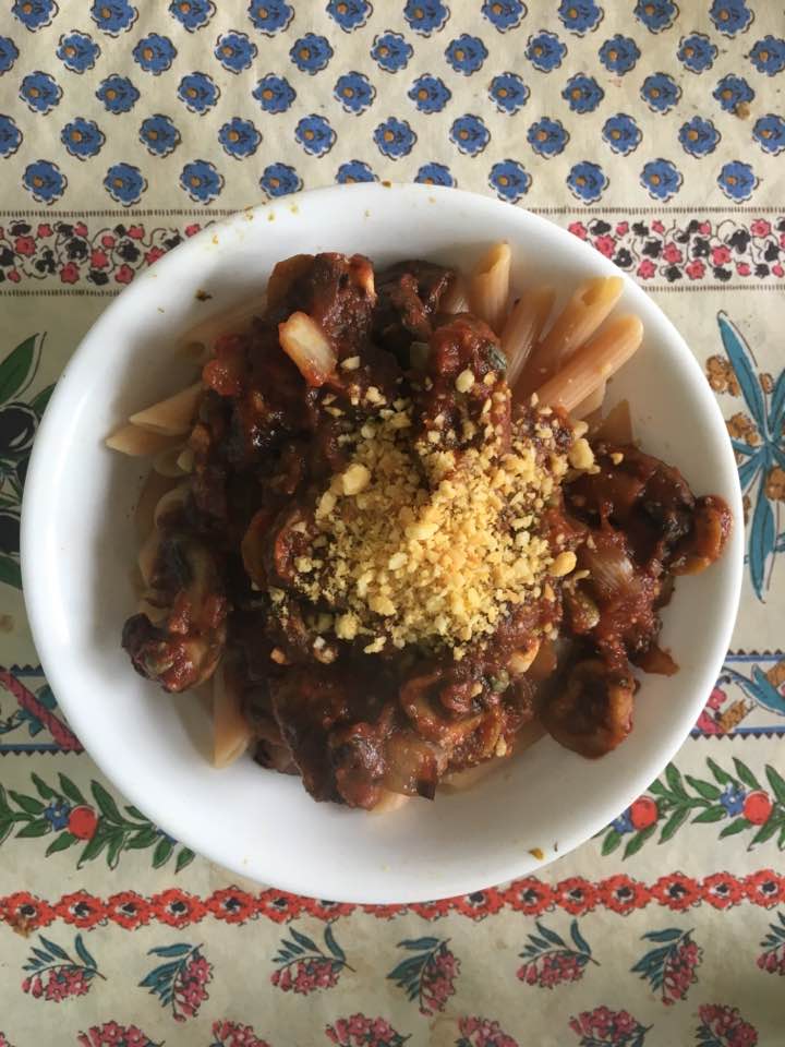 These days I favor lentil pasta. I don’t eat it frequently (it’s expensive, and why not simply eat lentils?) but it’s a nice once-in-a-while treat. It certainly packs more of a nutritional punch than the wheat equivalent (lots of protein and iron.)