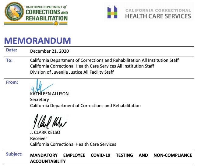 Today, CDCR Secretary Kathleen Allison communicated excellent news. The letter above reads: