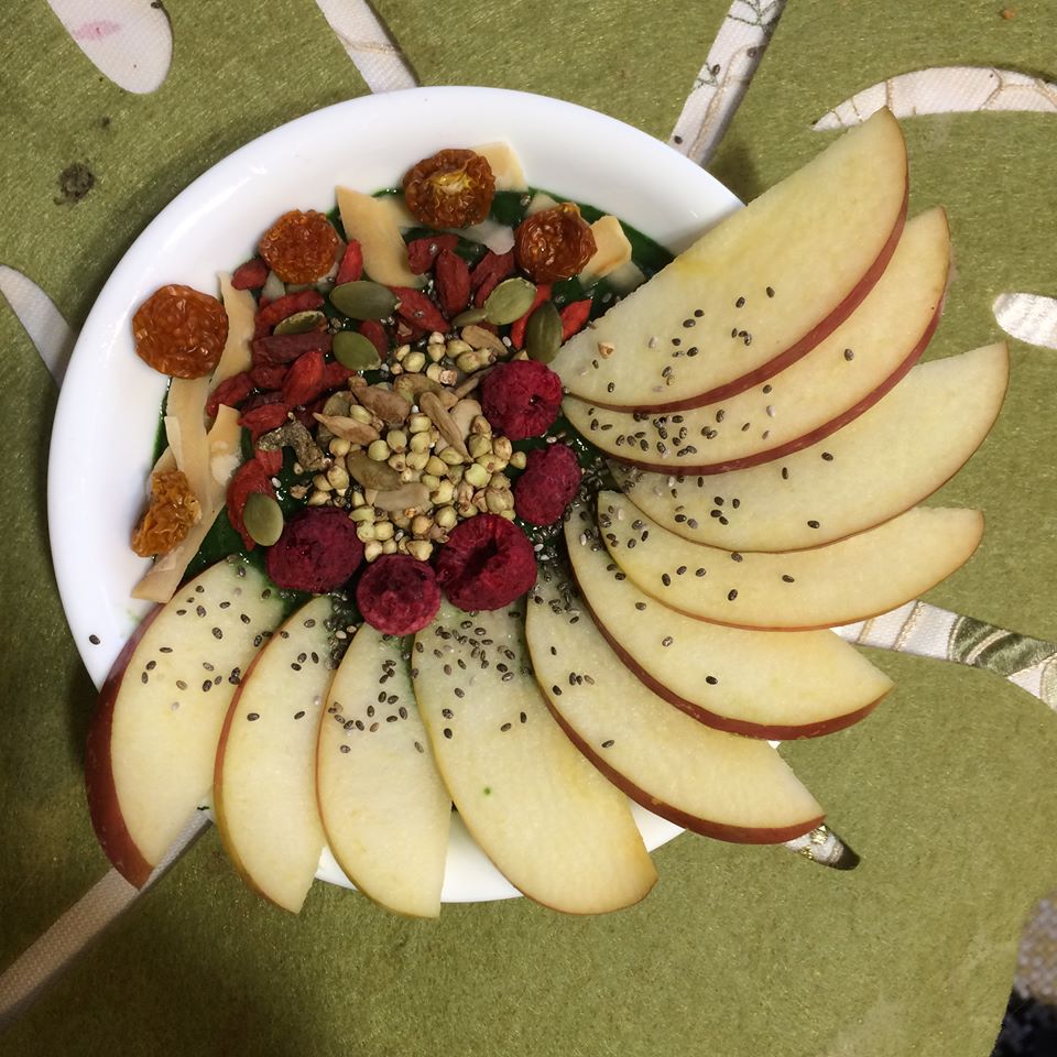 Preparation is very easy: throw all ingredients into the blender and blend until smooth (the lemon can be blended with the peel!). Then, pour into a bowl, leaving some room at the top. Then, get creative with the toppings! You can do rows, circles, whatever you like. Then EAT!